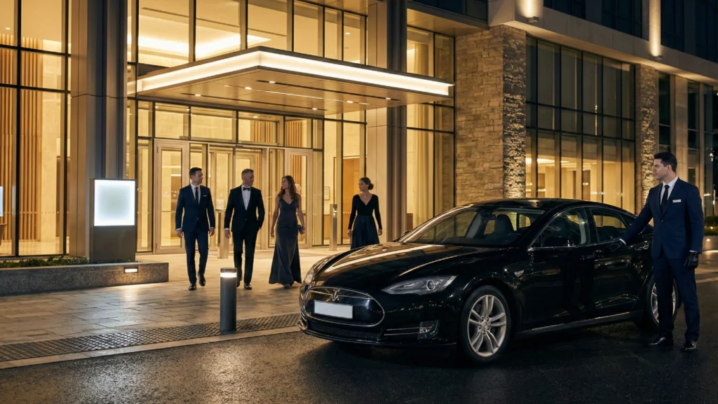Absolument. Notre service de chauffeur privé à Toulouse est adapté aux prises en charge VIP, dirigeants et partenaires internationaux. La présentation du véhicule Tesla et l’organisation fluide assurent une image professionnelle cohérente avec votre événement.